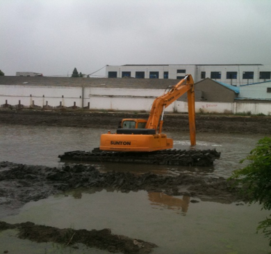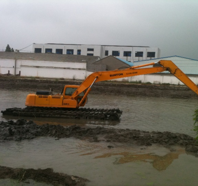 - 可在水深1米以內(nèi)的河道與海灘中作業(yè)。超過1米水深的作業(yè)環(huán)境,可根據(jù)客戶要求進(jìn)行特別設(shè)計(jì)及制造。產(chǎn)品對(duì)特種作業(yè)環(huán)境的適應(yīng)能力,其他類型的挖掘機(jī)無法替代,被海內(nèi)外客戶譽(yù)為“水中挖掘之王”。